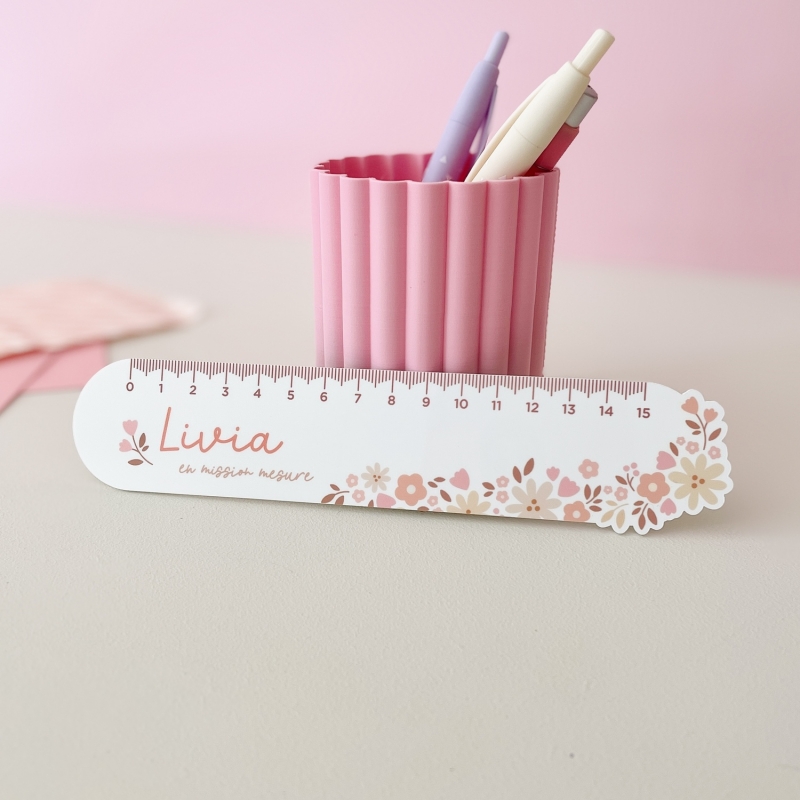 Cette règle personnalisée au prénom est à la fois utile et pleine de charme. Son motif Liberty fleuri apportera une touche délicate à la trousse de votre enfant. Un accessoire pratique pour la rentrée scolaire, imaginé pour allier douceur et fonctionnalité au quotidien.