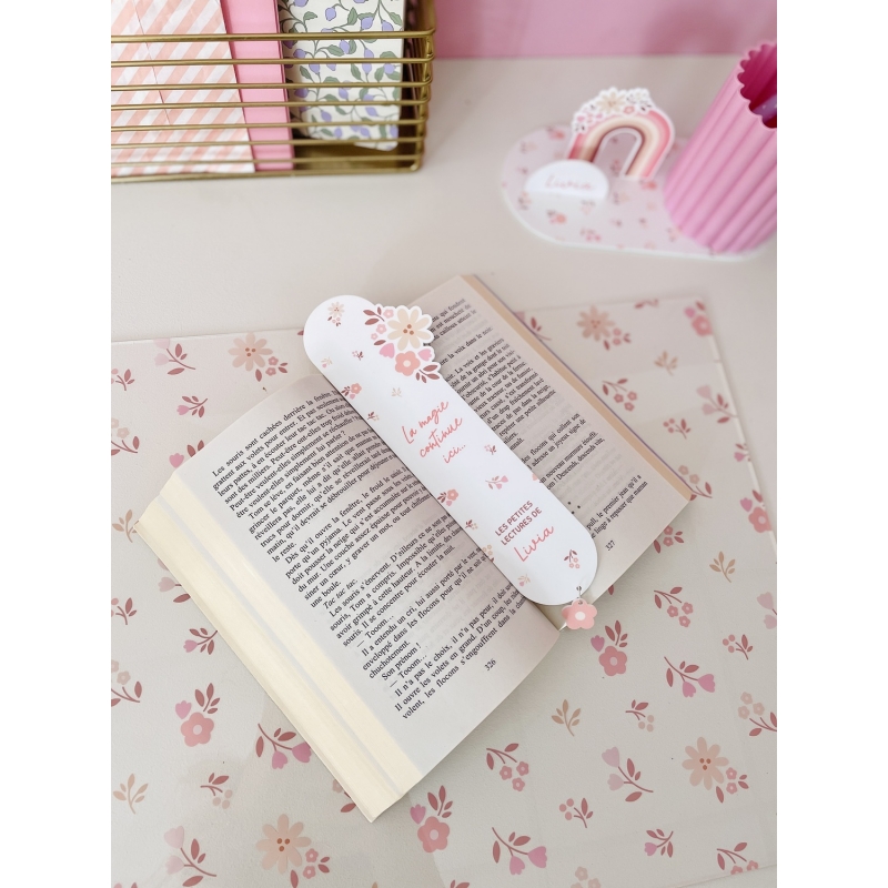 Ce marque-page personnalisé au prénom accompagne les petites lectures de votre enfant avec poésie. Avec son motif Liberty fleuri et son message doux, il rend chaque moment de lecture encore plus magique. Léger, solide et unique, c’est un joli cadeau pour la rentrée scolaire.