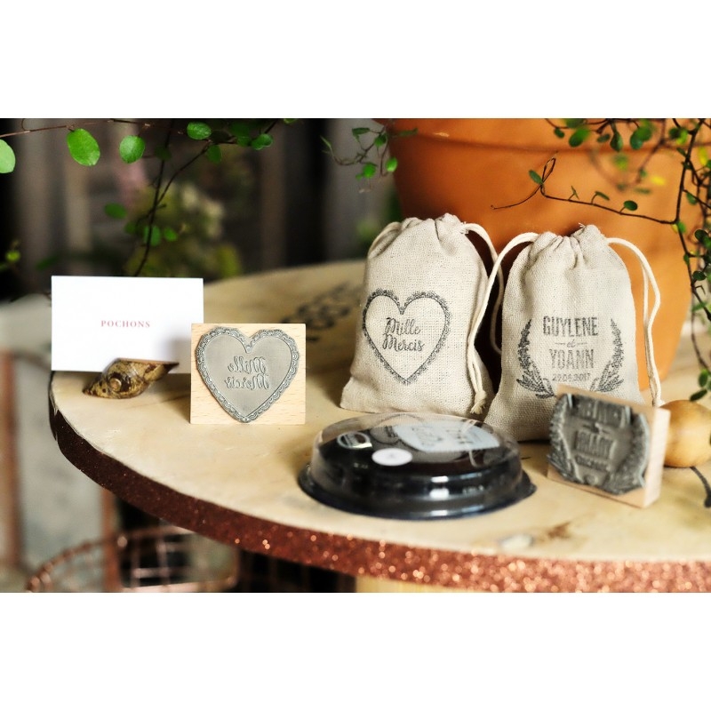 Pensez à remercier vos proches pour leur venue à votre joli jour grâce à des pochons en lin remplis de dragées, de bonbons, de lavande ou tout autre matériau. Grâce à sa matière en lin et à sa couleur écru, vous pourrez les personnaliser en utilisant un tampon en bois et de l'encre textile.