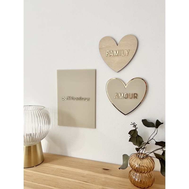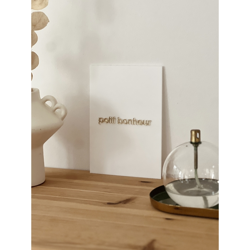 Décorez votre intérieur avec cette jolie affiche en plexiglas mat blanc ou lin, avec l'inscription "petit bonheur" collée en miroir champagne. Vous pouvez choisir de jouer l'accumulation en en associant plusieurs ou de jouer la simplicité avec une seule. Rendu chic et élégant !