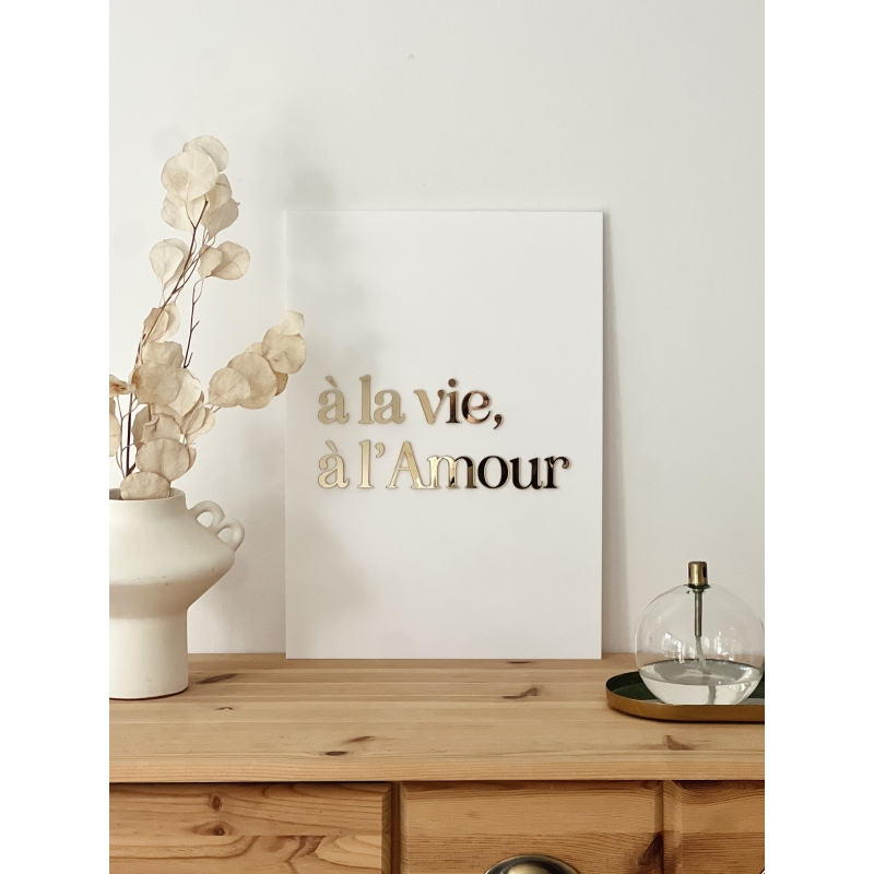 Optez pour notre affiche en plexiglas avec la citation "à la vie, à l'Amour". Son design épuré en acrylique mat blanc ou lin met en valeur ces mots empreint de sens. N'hésitez pas à jouer l'accumulation en optant pour plusieurs affiches de la même collection.