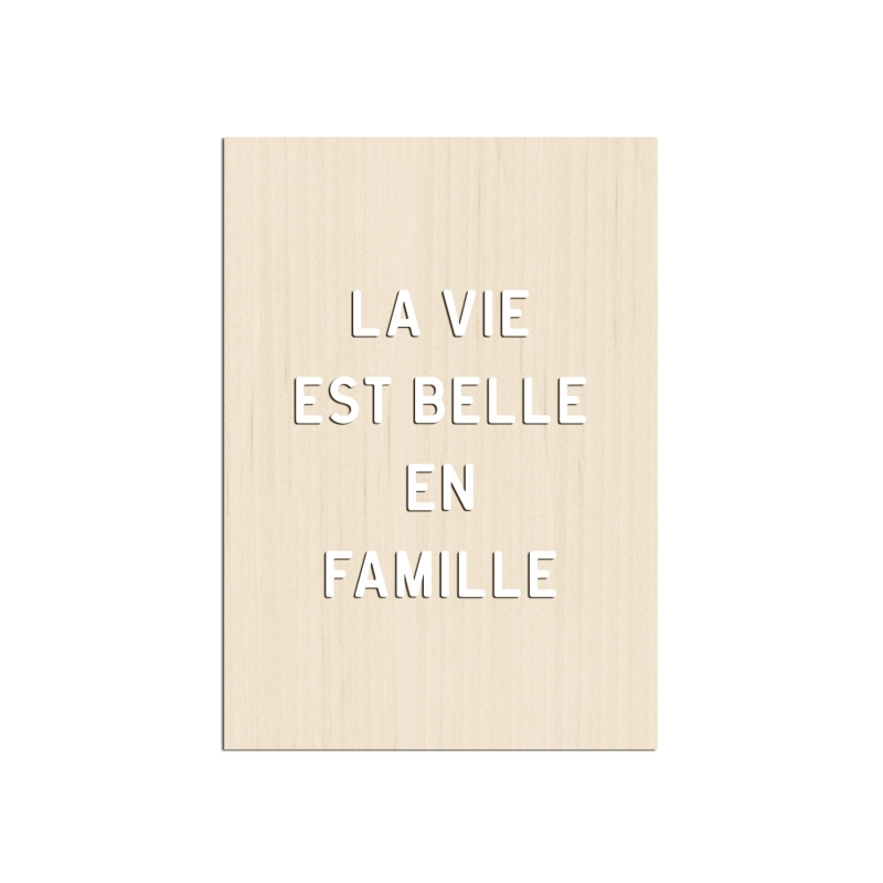 Donnez du cachet à votre décoration murale grâce à cette affiche en bois ou en plexiglas de couleur et au lettrage en relief. On adore sa phrase douce et intemporelle "La vie est belle en famille".