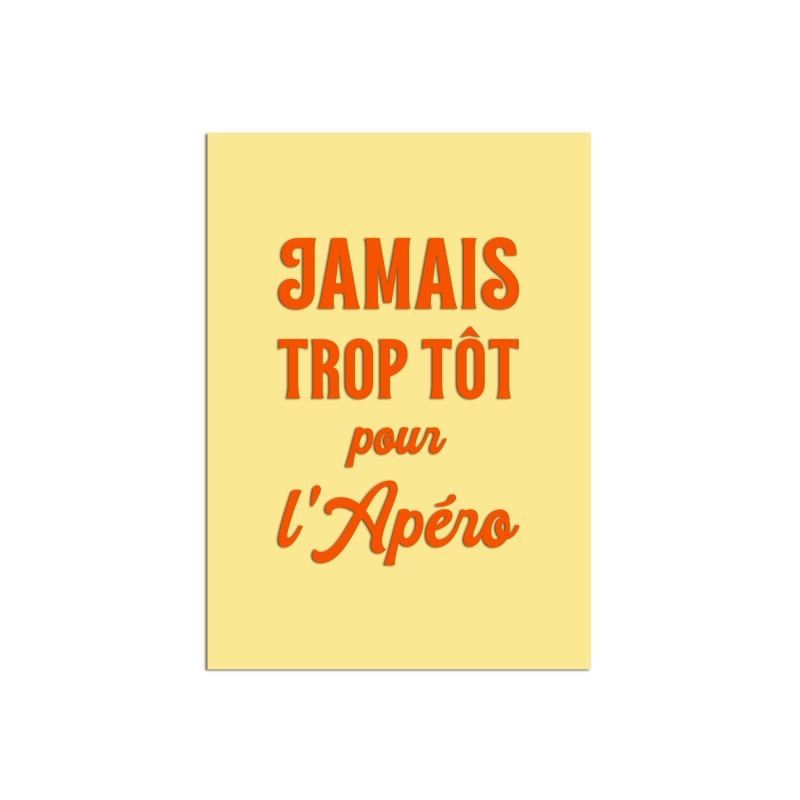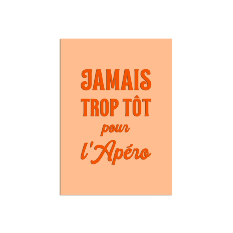 Ajoutez une décoration murale fun et colorée dans votre intérieur ou votre terrasse grâce à cette affiche. Vous allez adorer son message symbolique et décalé : Jamais trop tôt pour l'Apéro. Grâce à sa réalisation en plexiglas, le message est inscrit en relief pour créer une décoration unique et impactante !