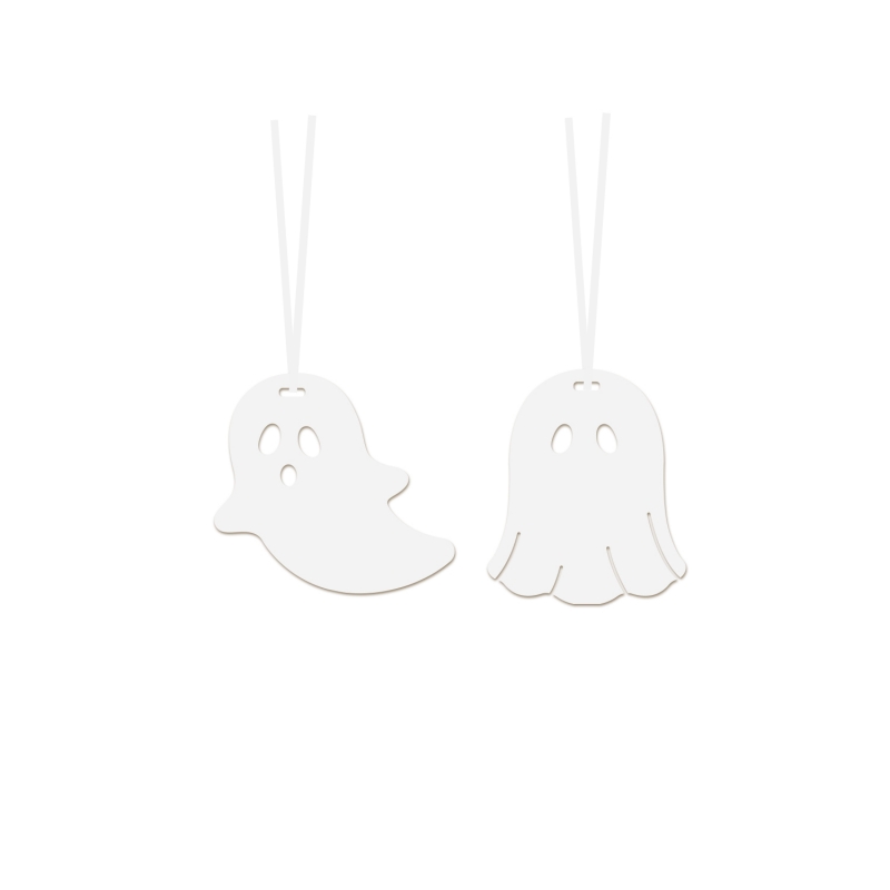 Lot de 2 fantômes en plexiglas blanc avec ruban blanc, à accrocher pour décorer votre arbre d'Halloween ou d'automne.
