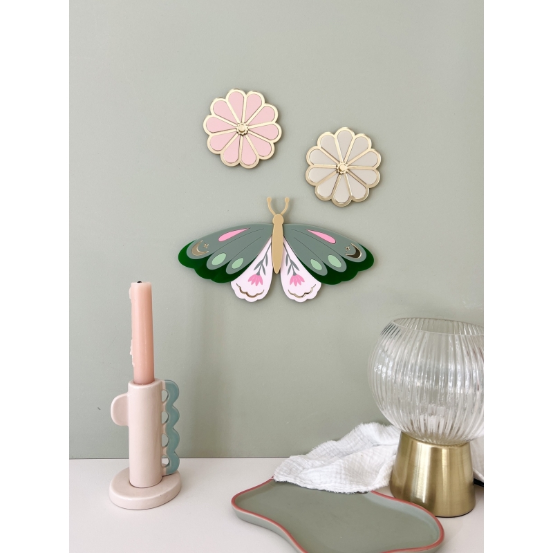 La commande comprend la réalisation de la décoration murale Papillon, ainsi que son assemblage dans notre atelier français. Elle est envoyée avec deux scratch 3M à l'arrière pour pouvoir l'accrocher facilement au mur (en option).