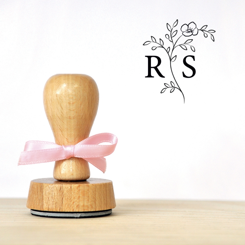 Tampon encreur en bois à personnaliser avec les initiales de vos prénoms. Un élément indispensable pour personnaliser une multitude de supports papiers et textiles avec votre logo de mariés ! Vous allez adorer le modèle Blossom avec ses jolies fleurs qui donneront du cachet à vos supports !