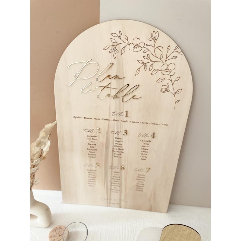 Plan de table mariage en bois, plan de table fleuri - Print Your Love