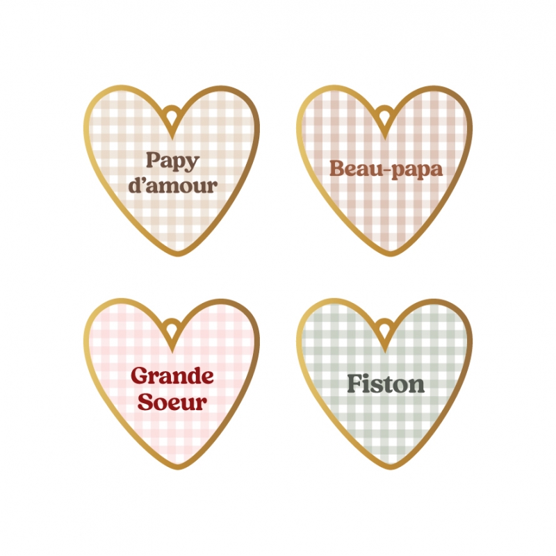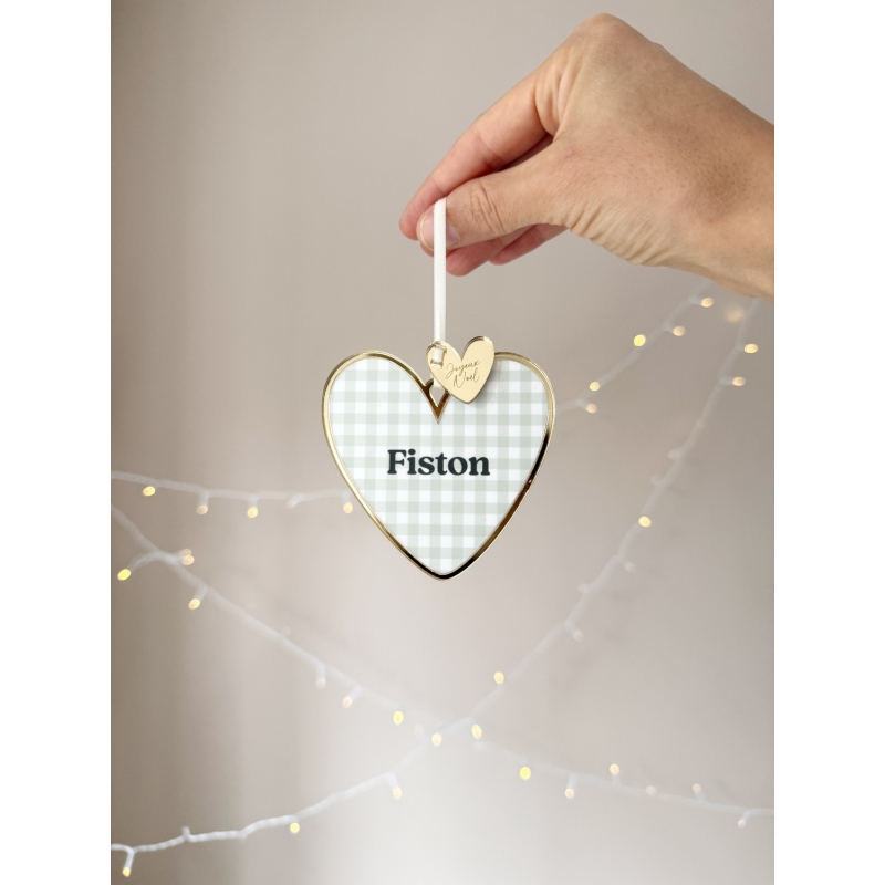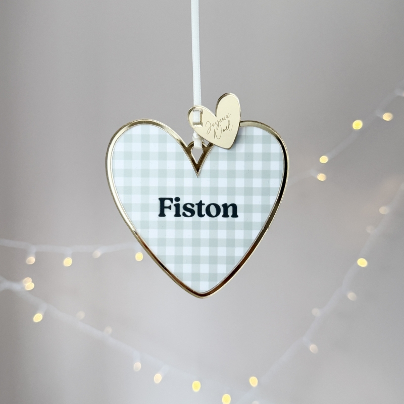 Apportez de l'authenticité à votre sapin de Noël avec ces suspensions Coeur en plexiglas et au motif vichy. Déclinées en différents coloris, elles sont mises en valeur par un contour miroir champagne et une breloque. Retrouvez une large sélection de textes affectueux (marraine d’amour, frangin, petite sœur, fiston…) pour de jolies décorations de Noël à s'offrir ou à offrir !