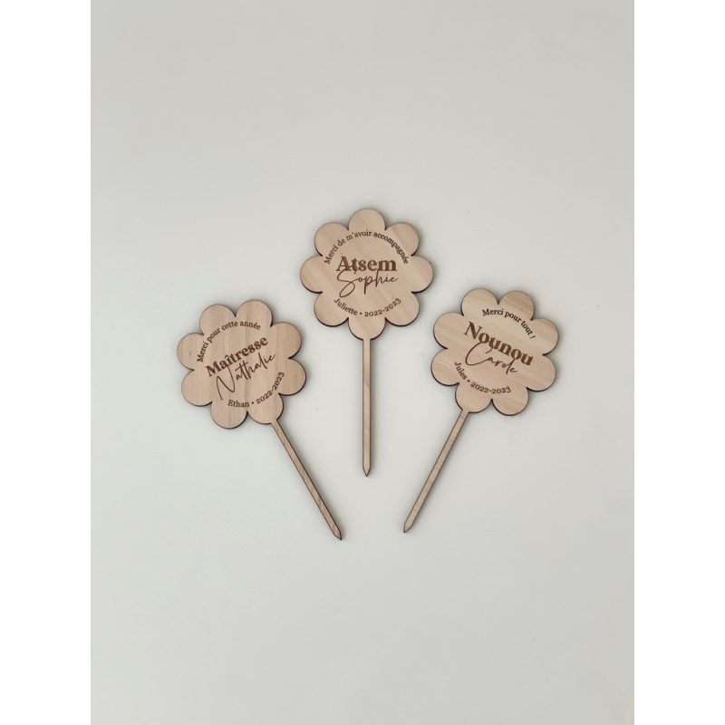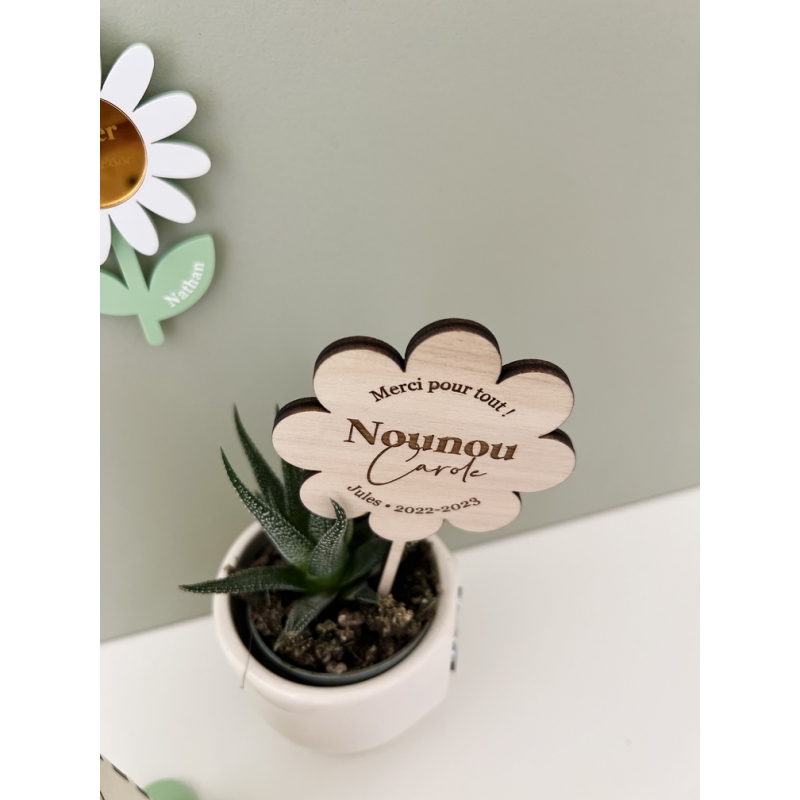 Remerciez la personne qui a accompagné votre enfant cette année en lui offrant une jolie plante et son petit pique personnalisé, un cadeau symbolique, une belle représentation du Professeur faisant grandir l'enfant. En bois ou en plexiglas miroir, le pique ajoutera une note personnelle et unique au cadeau !
