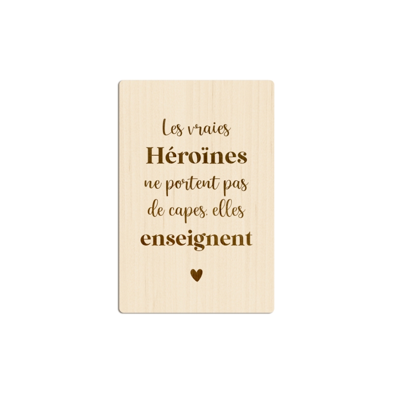 Carte postale en bois Les vrai(e)s Héro(ïne)s enseignentCollection cadeaux-pour-maitresses