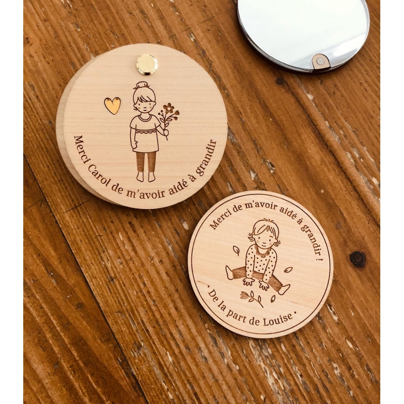 Pour la fin d'année scolaire, offrez un petit cadeau en souvenir de l'année passée avec votre enfant à la nounou, au maître ou à l'atsem. Ce magnet en bois est personnalisable avec le portrait de l'enfant (cf image 2) et le texte de votre choix. Un petit cadeau personnalisé qu'il ou qu'elle pourra garder en souvenir.