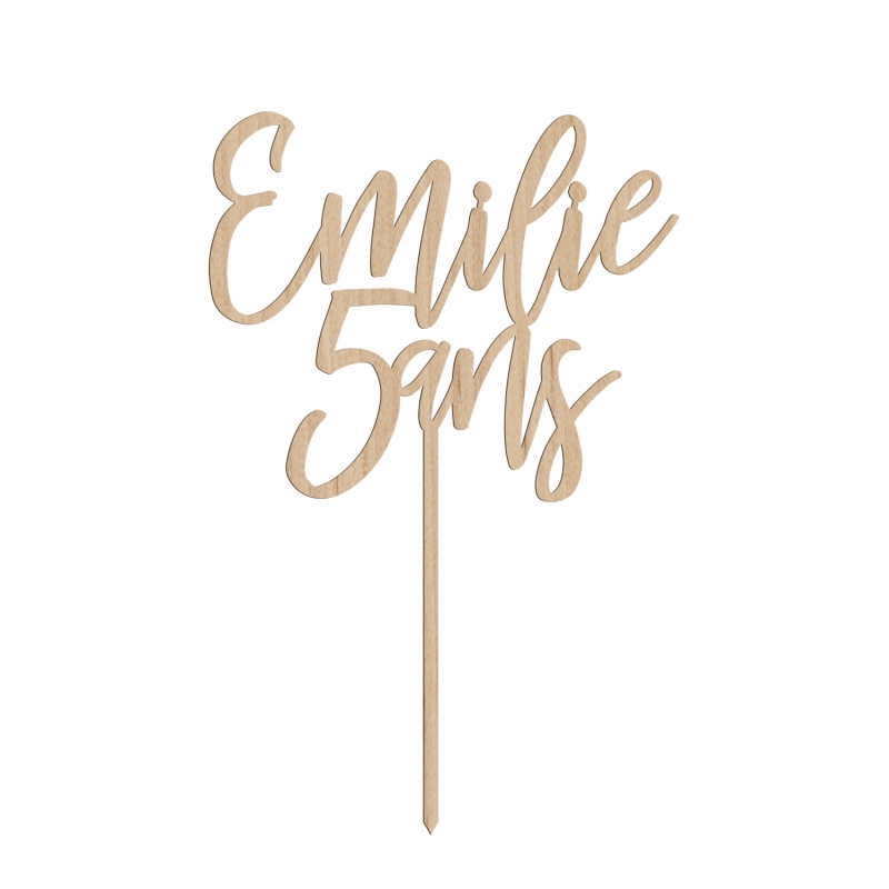 La commande du cake topper comprend la personnalisation du prénom et de l'âge, ainsi que sa fabrication.