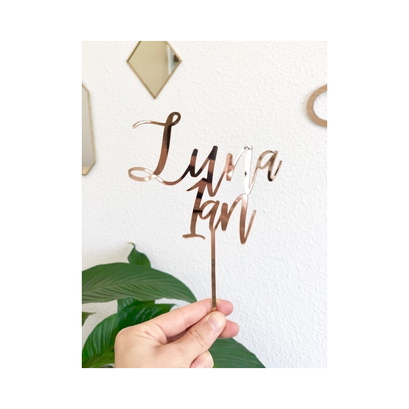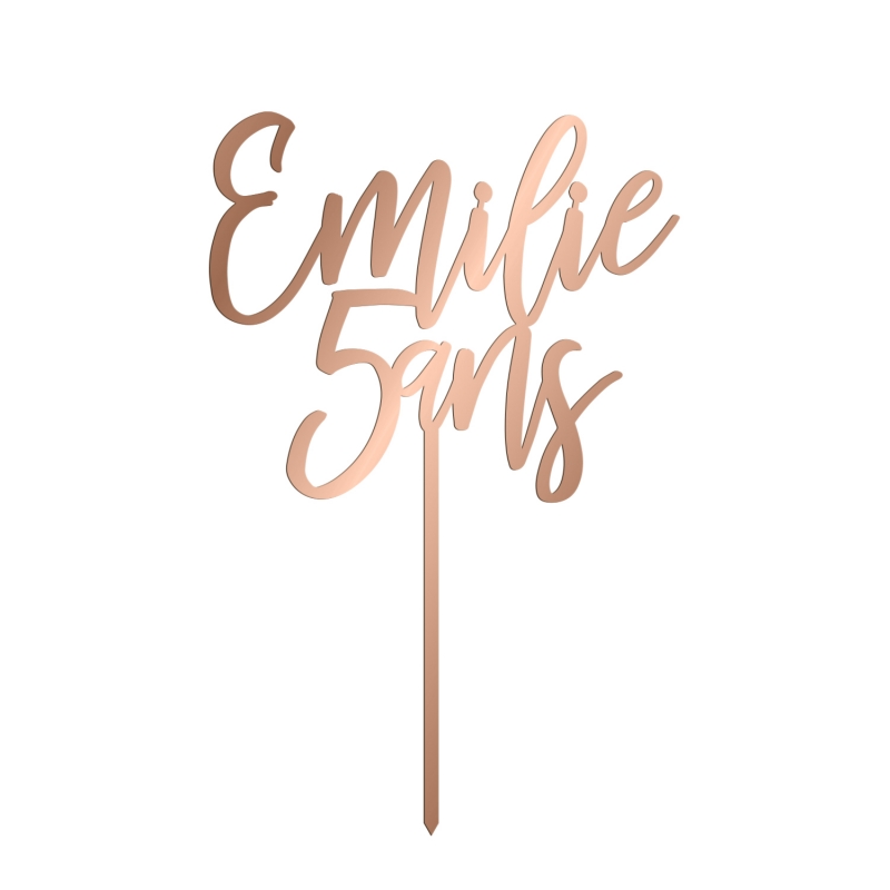 Joli cake topper avec une fine calligraphie moderne reprenant un prénom et un âge. Idéal pour mettre l'accent sur un anniversaire particulier : 1 an, 10 ans, 25 ans, etc. Disponible en bois ou en plexiglas effet miroir or, rose gold ou argent, il fera sensation sur le gâteau d'anniversaire !