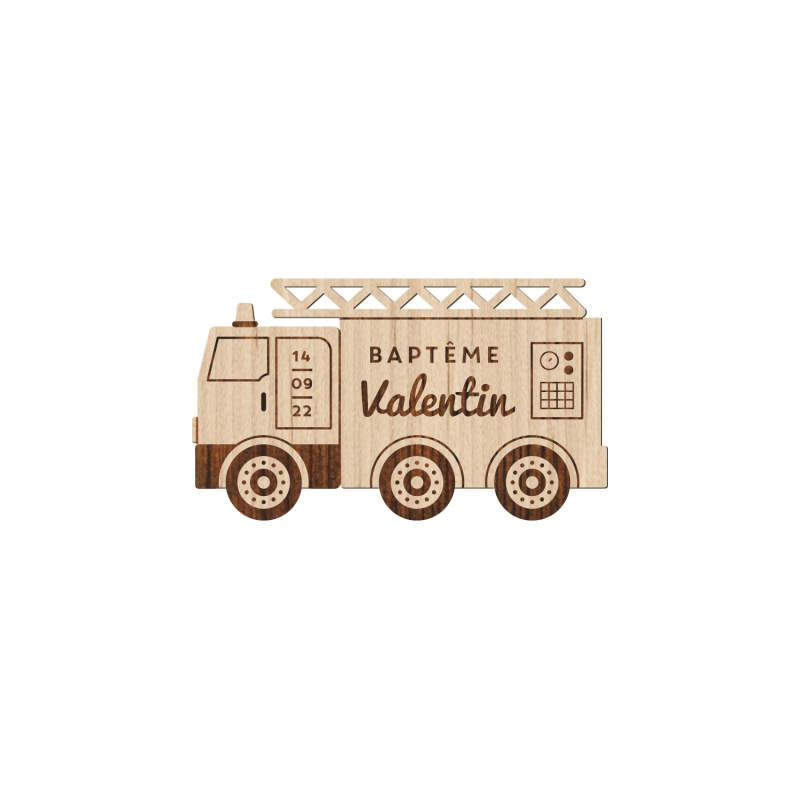 Magnet bois personnalisé, thème Camion de pompier - Print Your Love