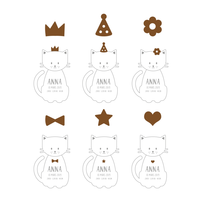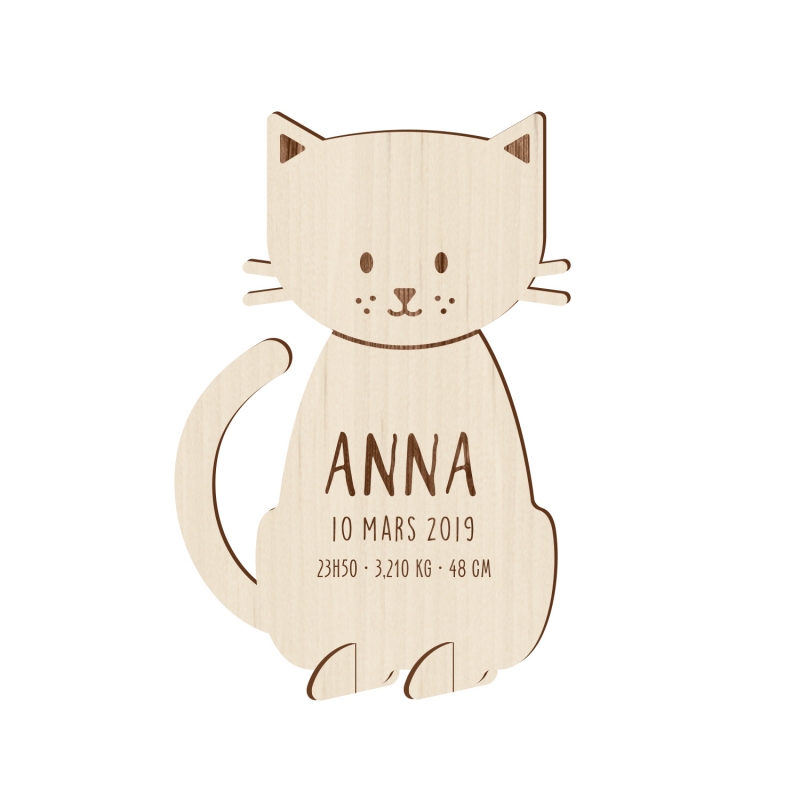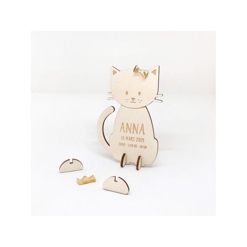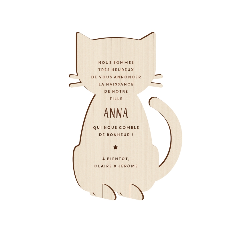 Annoncez la naissance de votre enfant à votre entourage de manière originale grâce à un faire-part en bois. Print Your Love vous propose de personnaliser ce joli kit ludique en bois en forme de petit chat pour que votre annonce soit unique. Ce nouveau concept original marquera à coup sûr l'esprit de vos proches !