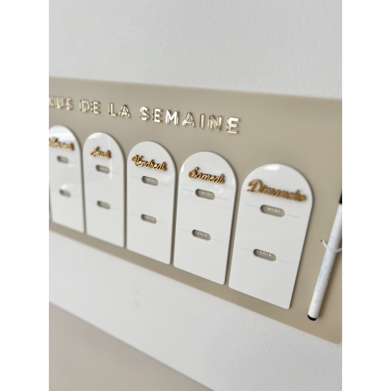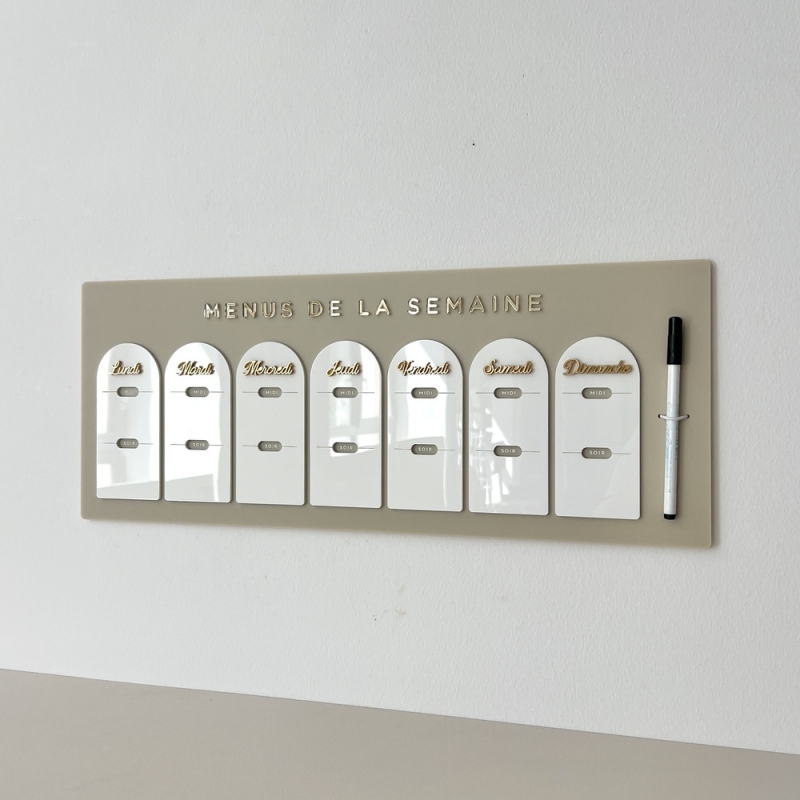 Craquez pour ce joli planning en plexiglas qui vous permettra d'inscrire tous vos menus de la semaine. Planning mural effaçable et réutilisable pour bien planifier vos repas. Grâce à ses séparateurs, vous pourrez inscrire un menu le midi et le soir.