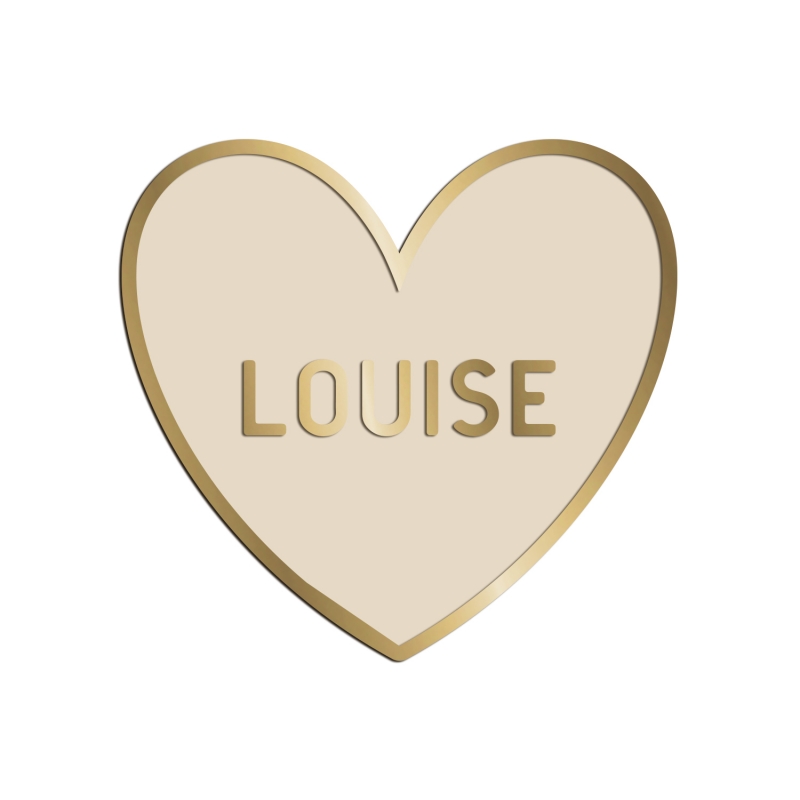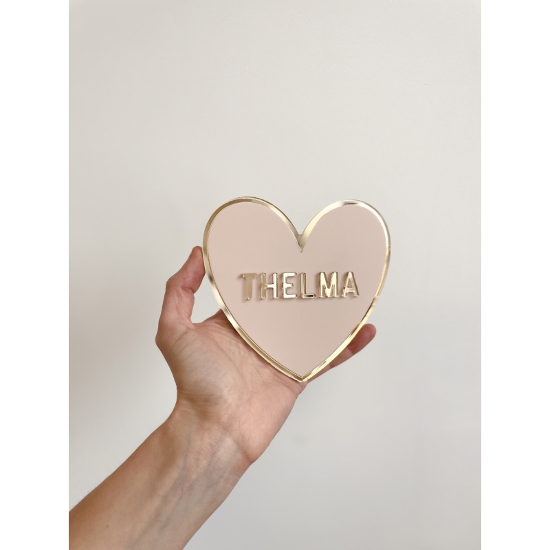 Joli coeur en plexiglas de couleur personnalisé avec le prénom de votre enfant. On adore l'association subtile entre le miroir champagne et la couleur du coeur qui mettra parfaitement en valeur le prénom de l'enfant.
