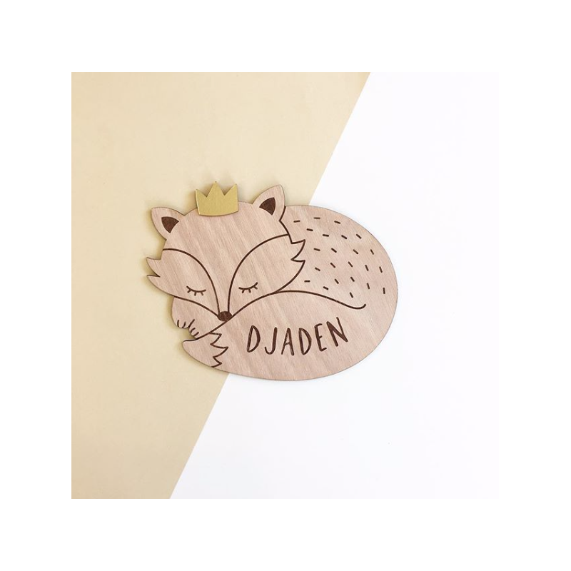 Décorez la chambre de votre enfant avec cette jolie enseigne murale en bois en forme de renard endormi. Outre son design élégant et très tendance, vous allez adorer pouvoir la personnaliser avec un prénom et ajouter une petite couronne.