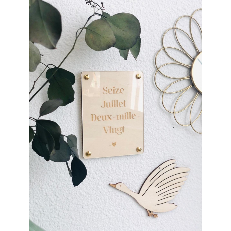 Les dates qui comptent... Nous vous proposons de joliment assembler et de mettre sous plexiglas une pancarte en bois finement gravée avec la date de votre choix. Une date clé, qui représente quelque chose de fort pour vous (date de naissance, de mariage, de rencontre, d'un jour particulier...). Une date importante que vous souhaitez accrocher pour vous rappeler cette journée si spéciale !