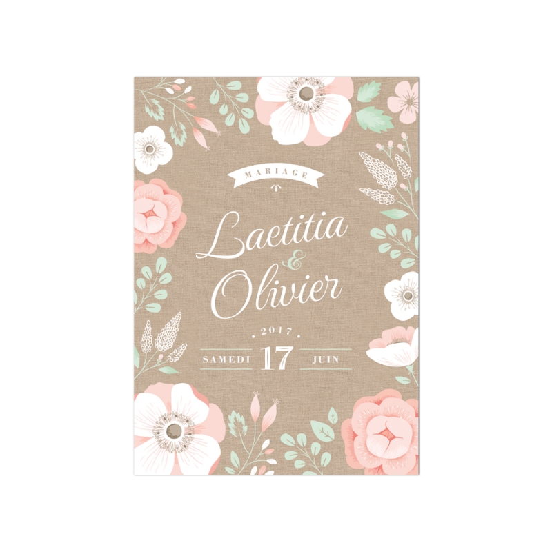 Faire part mariage fleuri fond lin anémone champêtre Agrandir l'image