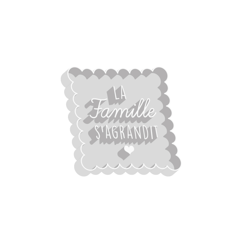 Vous cherchez un moyen d'annoncer votre grossesse à votre entourage ? Cet emporte-pièce "La famille s'agrandit" sera parfait pour une annonce tout en finesse et en gourmandise !
