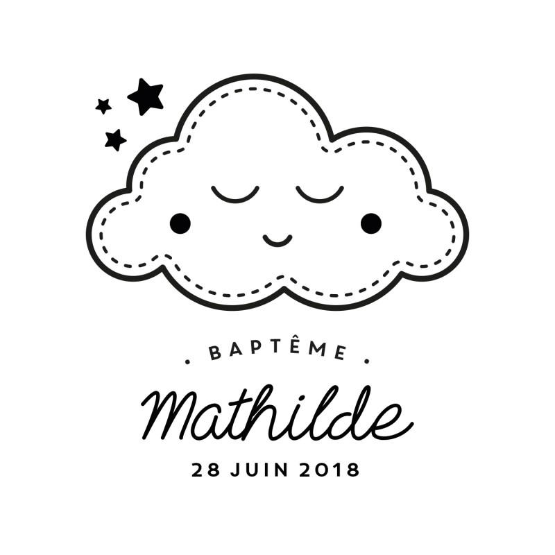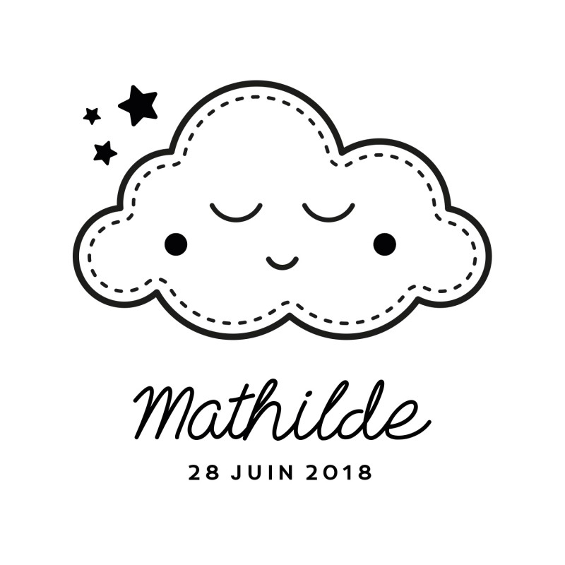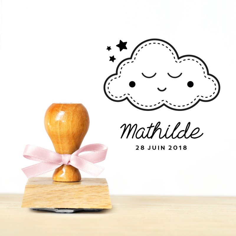 Tampon naissance personnalisé, modèle scandinave nuage et étoiles