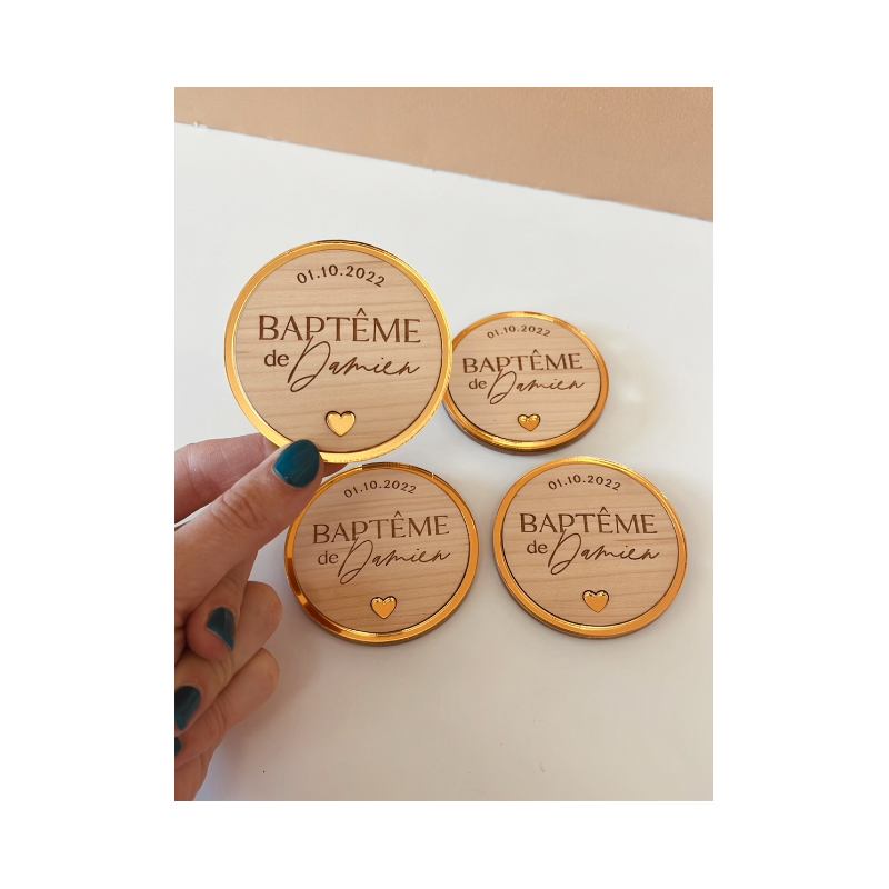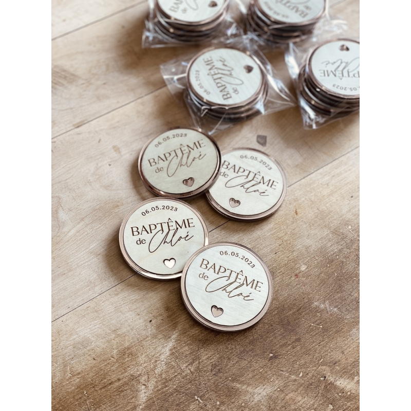 Aimants personnalisés en bois, cadeaux baptême - Print Your Love