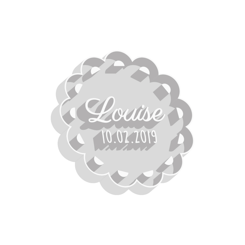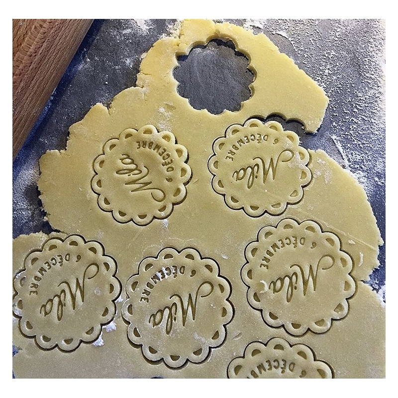 Grâce à cette presse à biscuits personnalisée, vous pourrez réaliser des sablés fait maison uniques et à l'image de votre enfant ! Cet emporte-pièce est personnalisé avec le prénom de votre fille et la date de son baptême ou de son anniversaire.