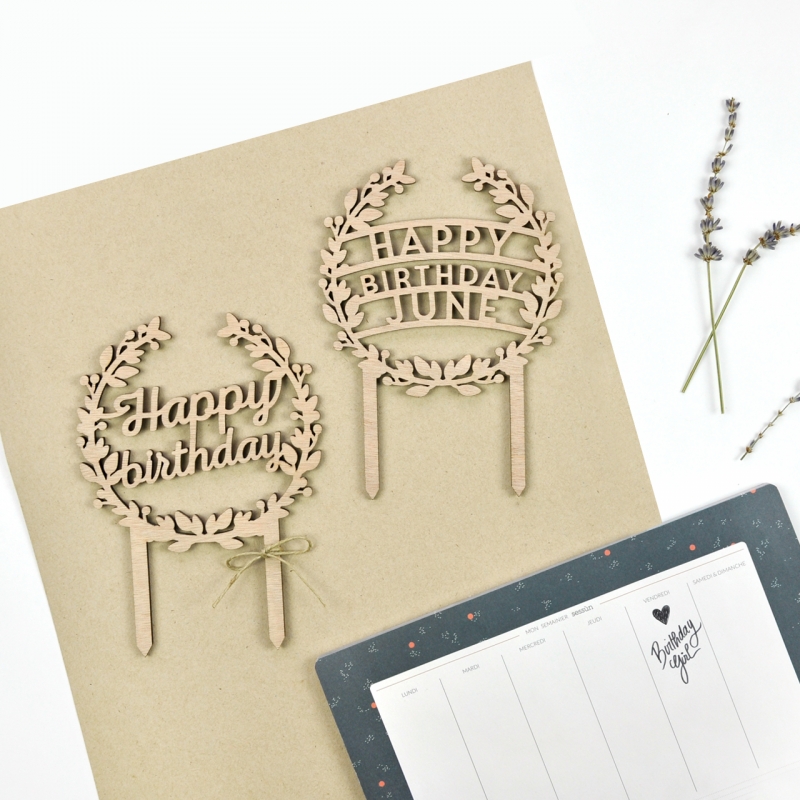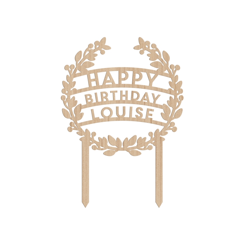Cake topper en bois personnalisé couronne de fleurs - Happy Birthday