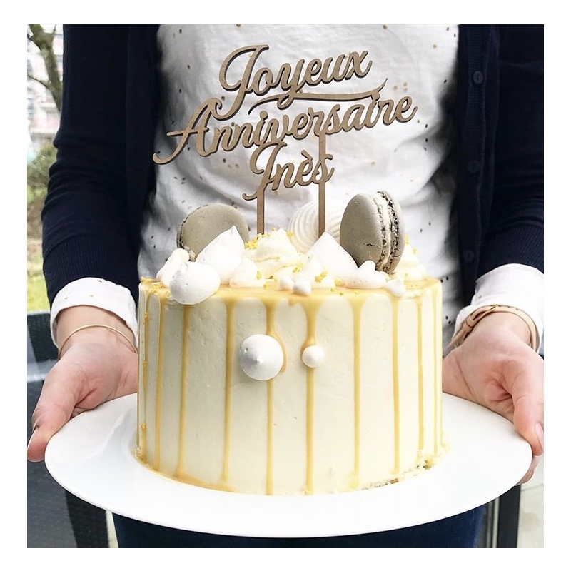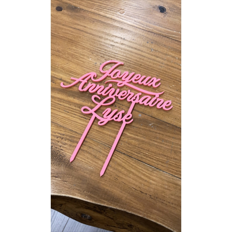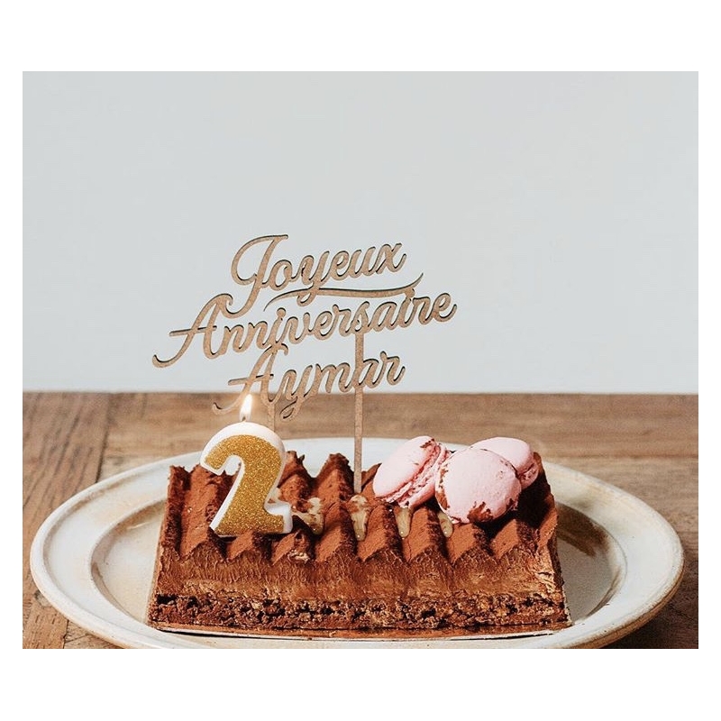 A noter que dans certains cas, une barre supplémentaire devra être ajoutée entre le prénom et le mot "anniversaire" pour des raisons de solidité. Dans ce cas, le cake topper n'aura plus qu'un seul pic. Si vous souhaitez impérativement garder les 2 pics, merci de nous le signaler.