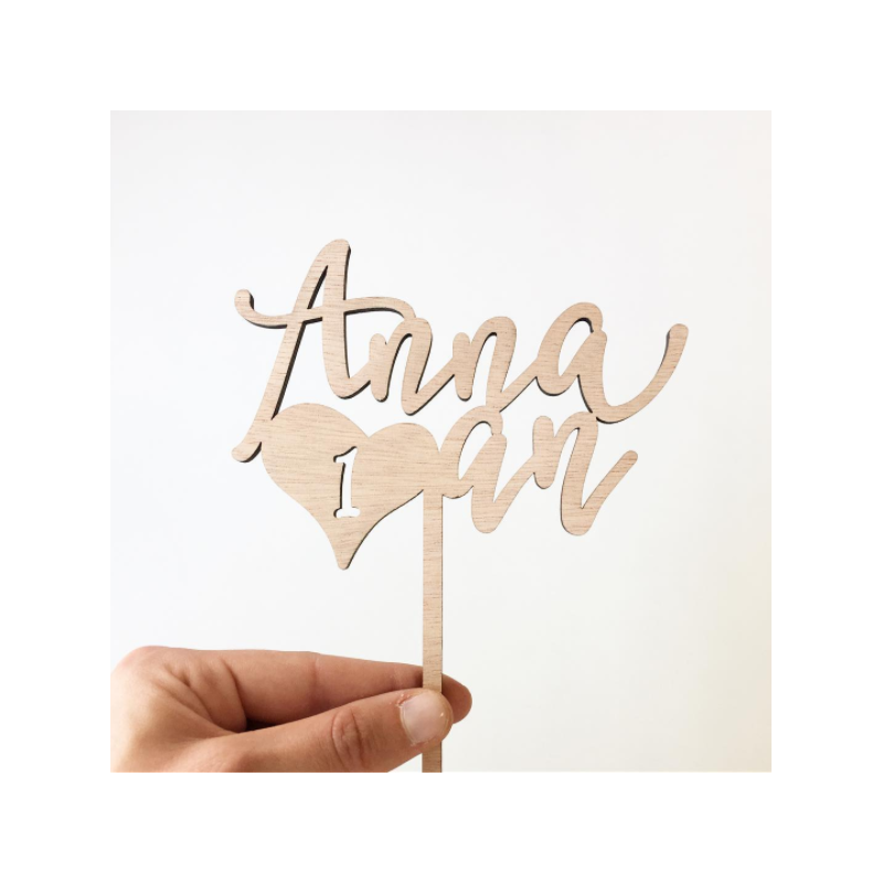 Cake topper anniversaire personnalisé, modèle calligraphie et coeur