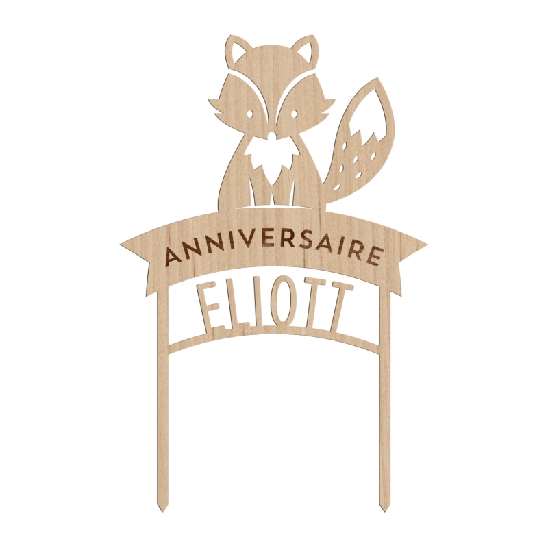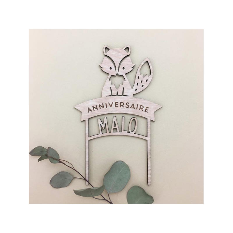 Cake topper personnalisé renard anniversaire - Print Your Love