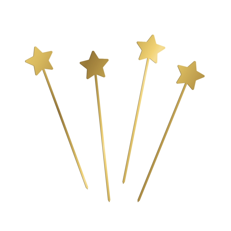 Laissez-vous séduire par ce lot de 4 étoiles en plexiglas doré pour décorer vos gâteaux. Que ce soit pour un anniversaire, un mariage ou pour Noël, ces pics en forme d'étoiles feront leur effet sur votre dessert !