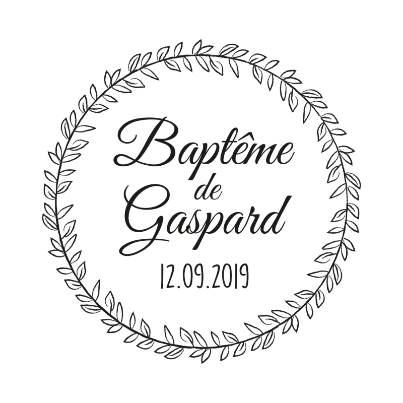 Craquez pour ce tampon en bois personnalisable décoré d'une jolie couronne végétale qui mettra en valeur le prénom de votre enfant et sa date de naissance ou de baptême. Il sera parfait pour personnaliser tous vos supports, tels que les enveloppes de vos faire-part, ses albums photos et même des supports textiles comme ses vêtements pour la crèche.