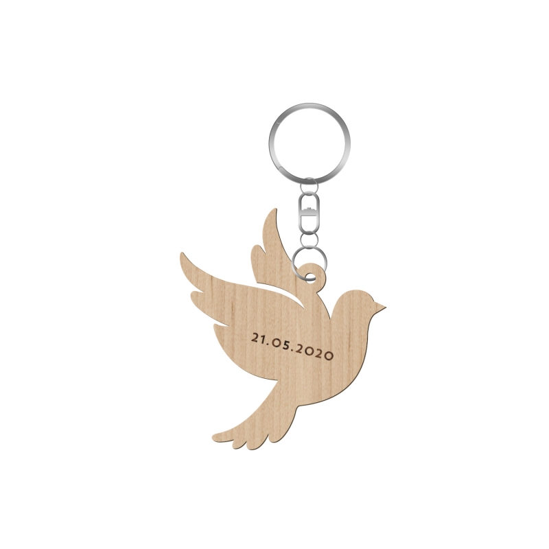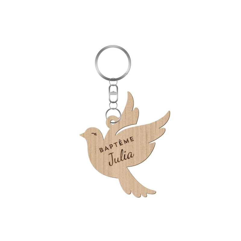 Porte-clé en bois personnalisé baptême colombe - Print Your Love