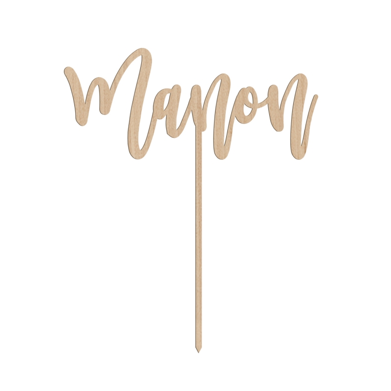 Joli cake topper en bois ou en plexiglas reprenant le prénom de votre enfant dans une calligraphie moderne. Cette décoration personnalisée sera parfaite pour décorer ses gâteaux d'anniversaire ou la pièce montée pour son baptême.