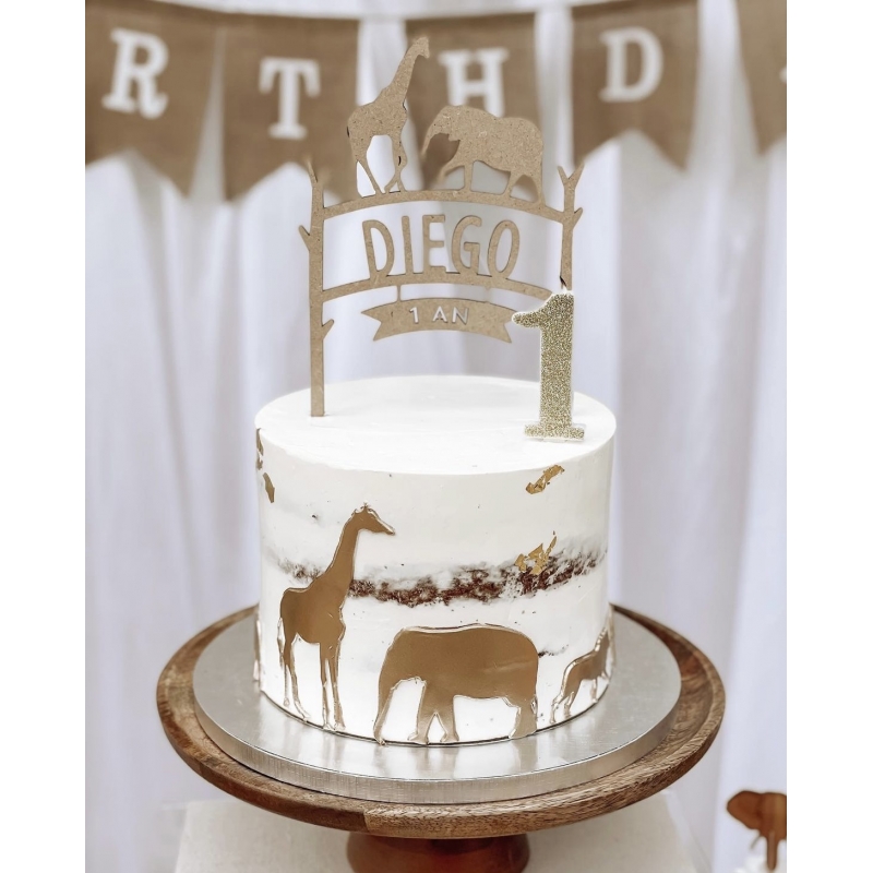 Cake topper en bois personnalisé thème savane - Print Your Love