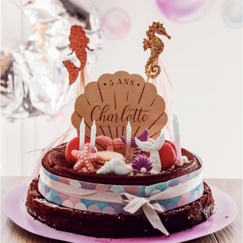 Cake topper personnalisé coquillage thème sirène - Print Your Love