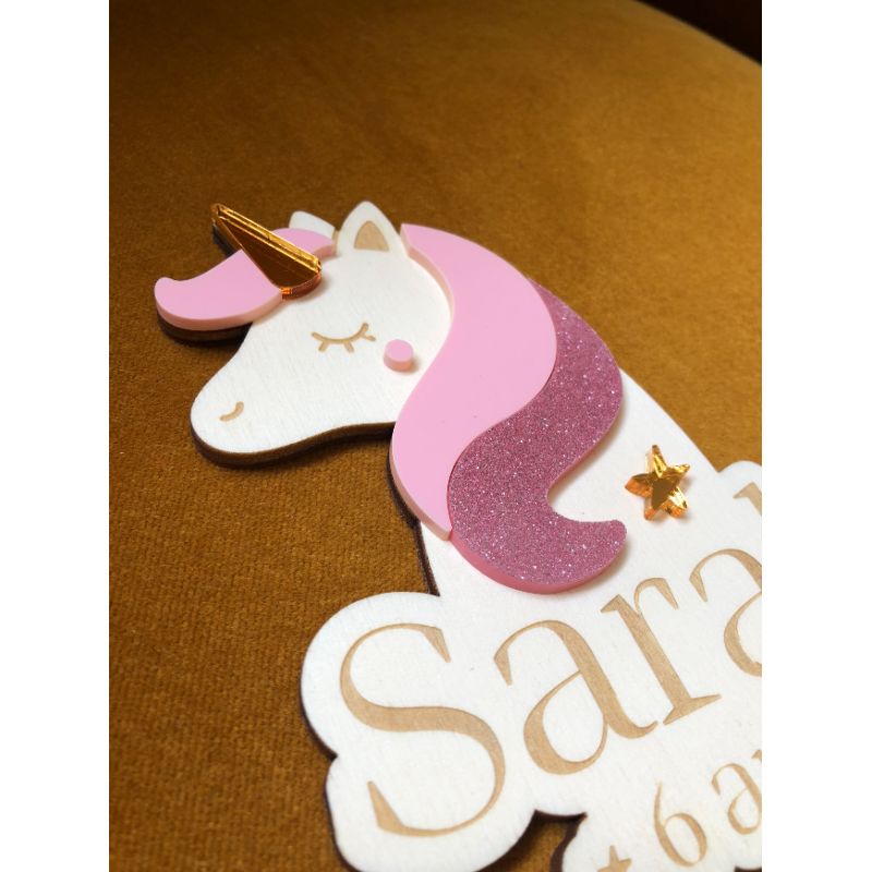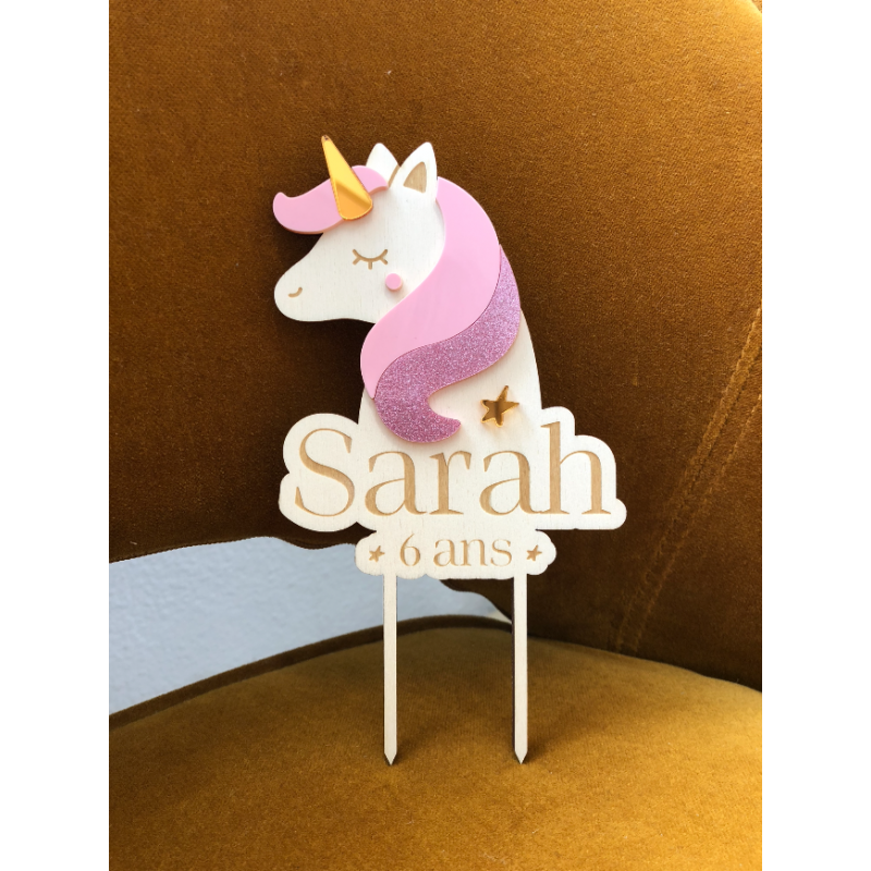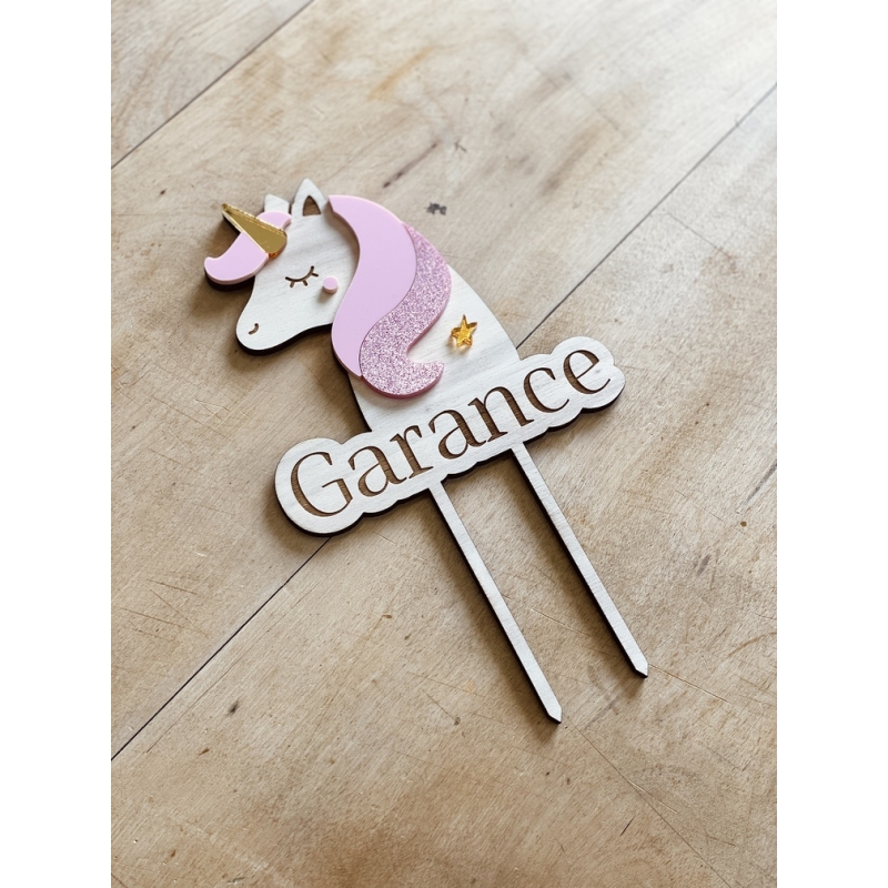 Cake topper en bois personnalisé thème licorne - Print Your Love