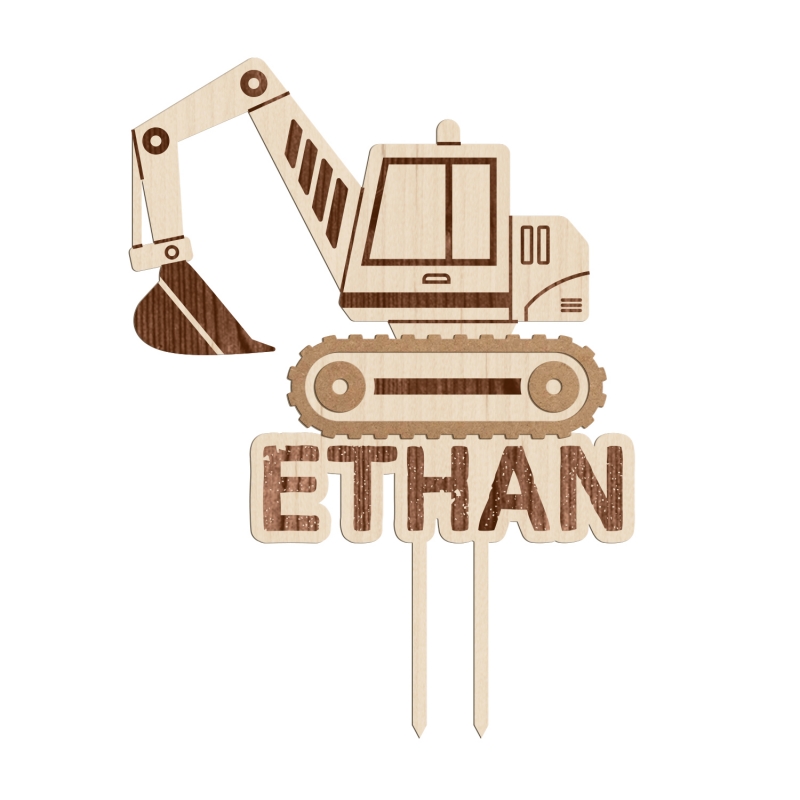 Votre enfant est fan des engins de chantier ? Ce cake topper pelleteuse sera parfait pour son anniversaire ! Sous la pelleteuse, inscrivez le prénom de l'enfant en gravure ou en relief en choisissant l'option plexiglas (rouge, vert ou jaune). Le cake topper personnalisé sera LA touche finale sur votre dessert maison, il mettra plein d'étoiles dans les yeux de votre enfant !