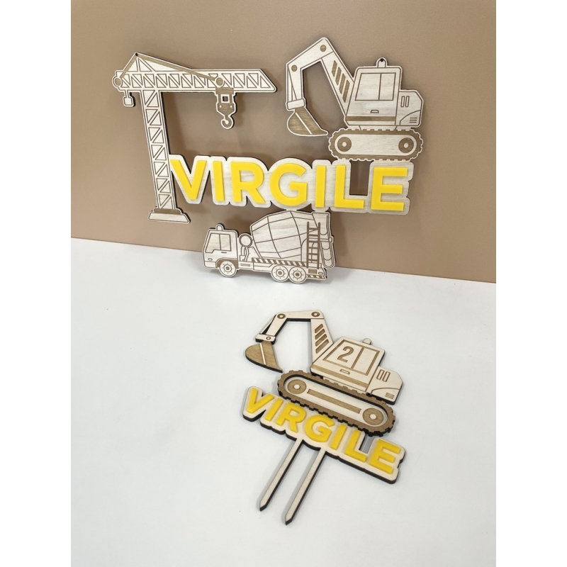 Cake topper anniversaire Engins de chantier - Print Your Love