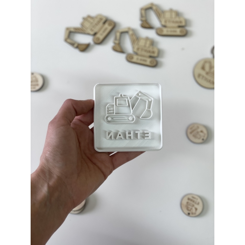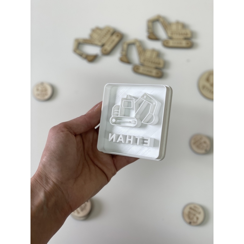 Pour l'anniversaire thème chantier de votre enfant, réalisez de chouettes sablés maison grâce à notre emporte-pièce ! Illustré d'une pelleteuse, votre enfant va adorer manger ces sablés à son effigie ! L'emporte-pièce est personnalisable avec son prénom pour avoir un rendu unique et 100% personnalisé !