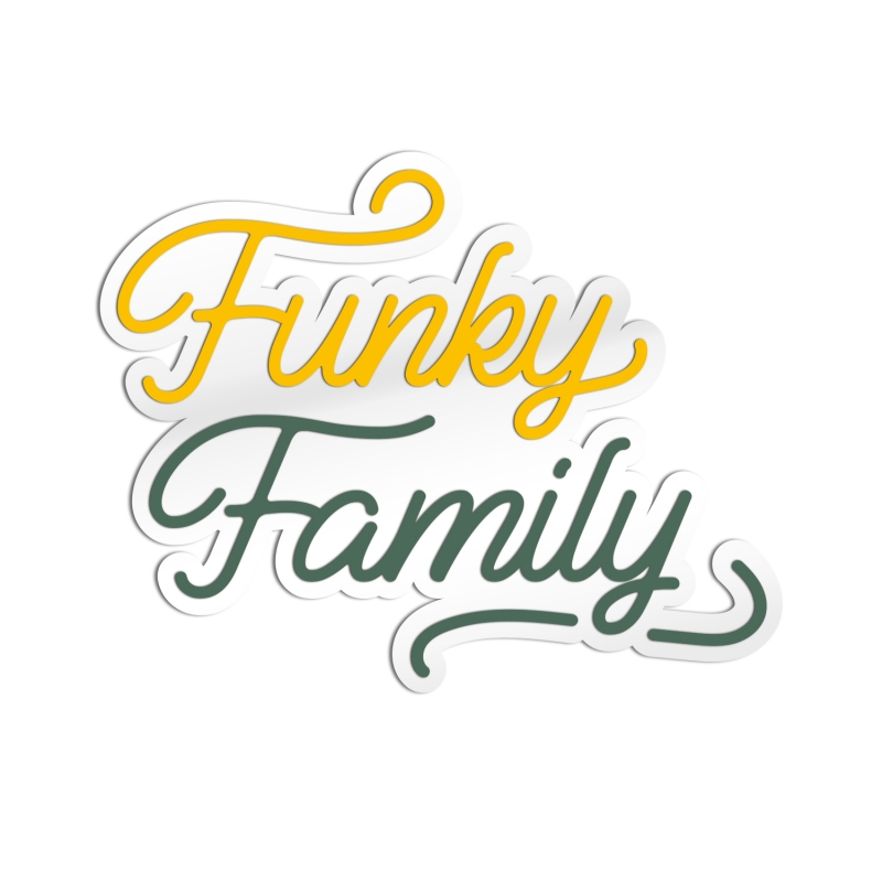 Le tarif comprend la découpe de l'enseigne "Funky Family" selon les matières et le format choisis dans les menus déroulants.
