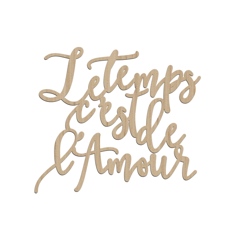 Décorez votre salon, votre entrée ou la chambre de votre enfant avec cette douce citation : "Le temps c'est de l'amour". Cette jolie enseigne est réalisable en bois ou en plexiglas afin de s'adapter parfaitement à votre décoration d'intérieur.