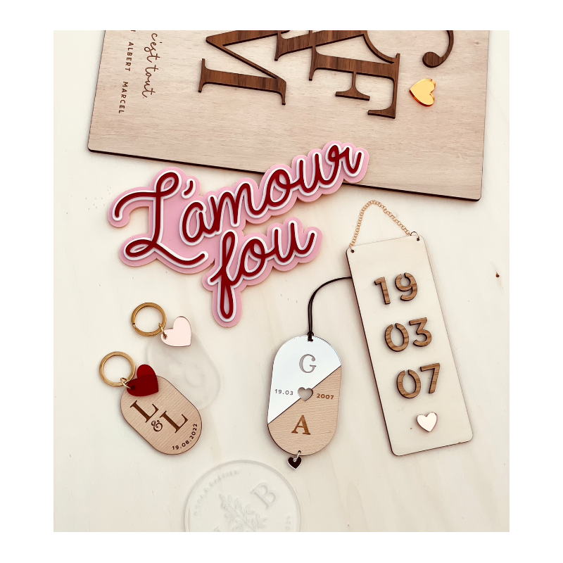 Donnez du pep's à votre décoration murale grâce à cette enseigne "L'amour fou". Sa superposition de 3 matières et sa typographie moderne lui confèrent un charme indéniable !