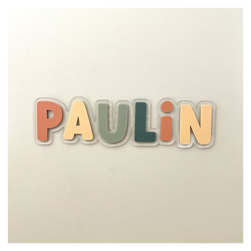 La commande comprend la personnalisation du prénom (comprenant de 4 à 6 lettres), ainsi que sa réalisation et son assemblage selon les options choisies. Les lettres ont toujours le même ordre, à savoir terracotta, ocre, sauge et vert (coloris Earth).