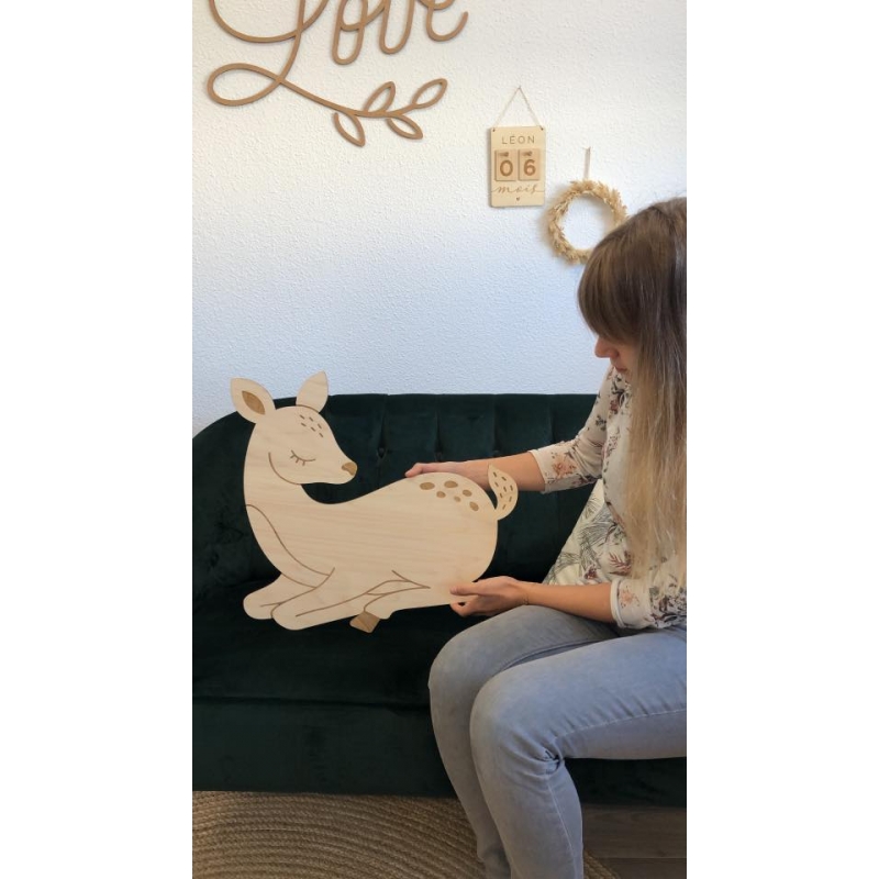 Décorez la chambre de votre enfant et/ou le lieu de votre événement avec un joli faon en bois. Que ce soit pour un anniversaire ou pour un baptême sur le thème de la forêt, vous allez l'adorer ! Vous pouvez la choisir en format petit ou grand selon vos envies et la place que vous voulez lui accorder au sein de votre décoration !