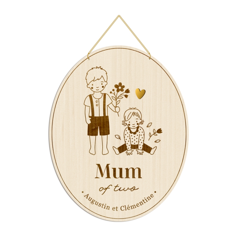 - Choix de la mention "Mum of two", "Maman d'Arthur et Lilly", "Maman d'amour", etc ;