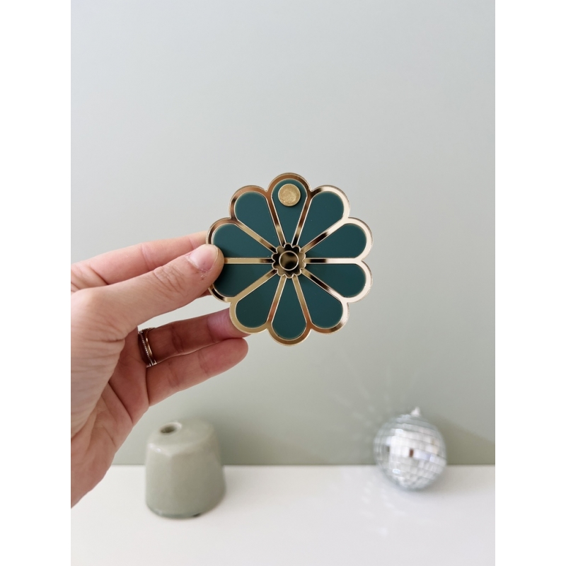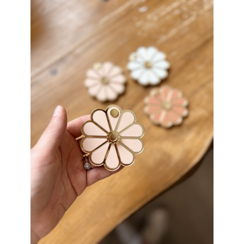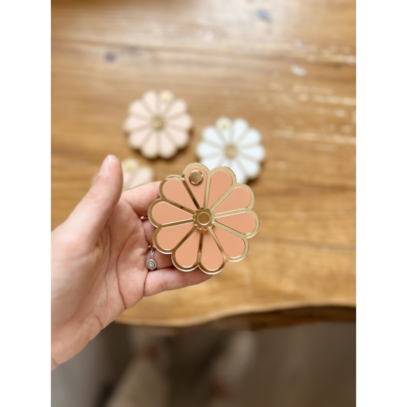 Vous allez adorer ce joli miroir de poche en forme de fleur à personnaliser à l'occasion de la fête des mères. On craque complètement pour son design rétro chic tout droit sorti des années 1910-1920, esprit art déco. Sur le miroir, inscrit un petit message sur elle (ex : Maman d'amour) et les prénoms des enfants à l'arrière. Un joli cadeau unique et personnalisé.
