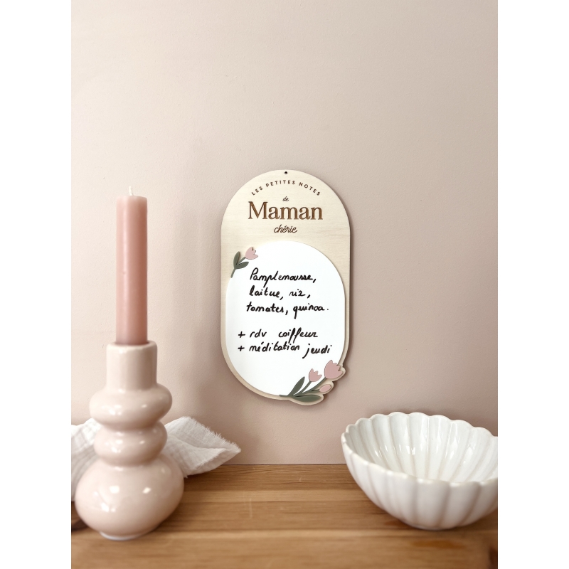 Pour la fête des mères, offrez un cadeau original et utile : un petit tableau mémo réutilisable. La surface en plexiglas blanc permet d'écrire à l'infini avec un marqueur effaçable, de quoi mettre constamment à jour ses pense bête